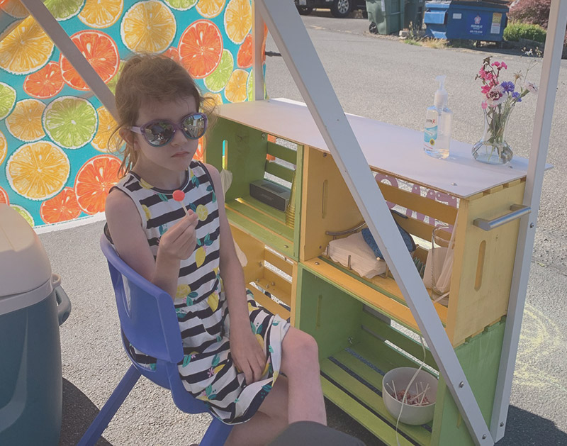 During the summer months, I enjoy selling lemonade from my mobile lemonade stand. The fresh strawberry puree upgrade is very popular, and every visitor receives a free lollipop! After the Hawaii Maui fires in 2023, I donated all profits to help Maui pets and animals in need.